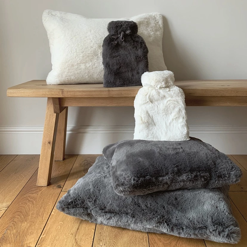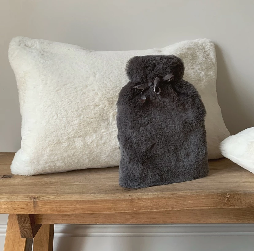 As the evenings draw in and the weather turns colder reach for our sumptuously soft faux fur hot water bottle to keep you cosy and warm. Our square hot water bottles feature a co-ordinating velvet ribbon tie and are presented in a cotton drawstring bag, making them perfect for gifting, especially at Christmas. Also available in dark olive and off-white.
