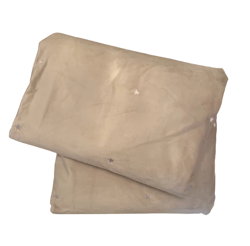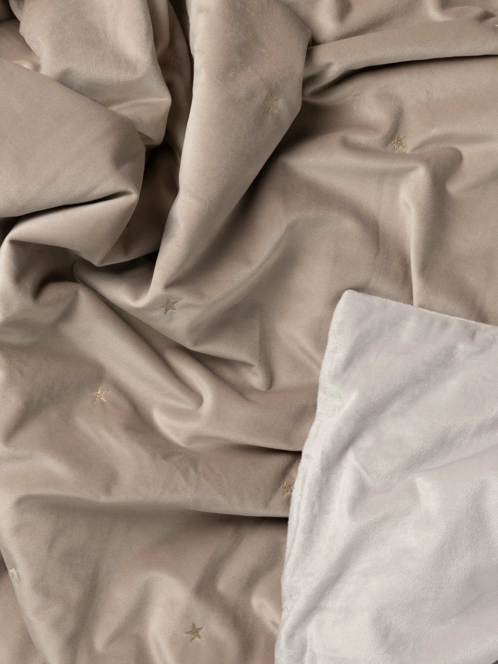 Add a little luxury to your bed, sofa or chair with our chunky, super soft velvet throw. Perfect for cosying up on those cold winter evenings. On one side this beautiful throw features a delicate silver embroidered star on a silky soft dusky pink/nude velvet. The reverse of the throw features a paler nude velvet.