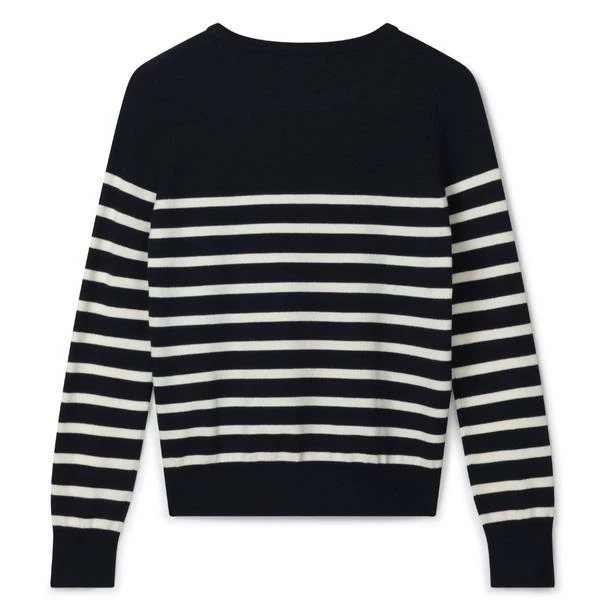 A classic navy and ecru stripe jumper. Jane is a neat fitted timeless shape that will take you through any season. One size Knit: 50% Rayon/28% Polyester/22% Nylon