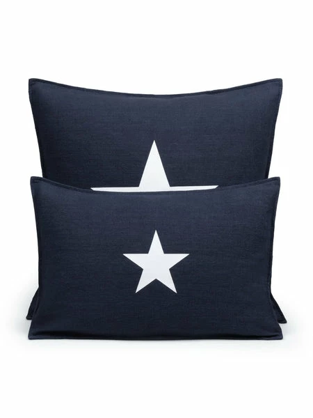 A natural fibre cushion in Navy with a white star. The 100% natural fibre has a wonderful linen look. Blue and white is such a classic colour combination and looks fresh and stylish in any room – a contemporary living room, bedroom, breakfast room or even a kid’s room. The star is perfect for adding a fun element to your interiors. Available in 3 sizes .. mix up the sizes for added interest. Made from 100% soft natural fibres with feather pad. Linen Look 100% natural fibre Available in 3 sizes Giant: 65 x 65 cm Square: 50 x 50 cm Oblong: 30 x 45 cm Cushion Pad – 100% Feather Fabric Cover – 85% Ramie 15% Cotton natural fibre