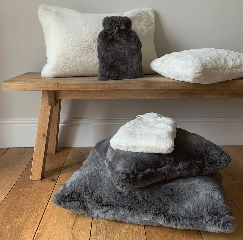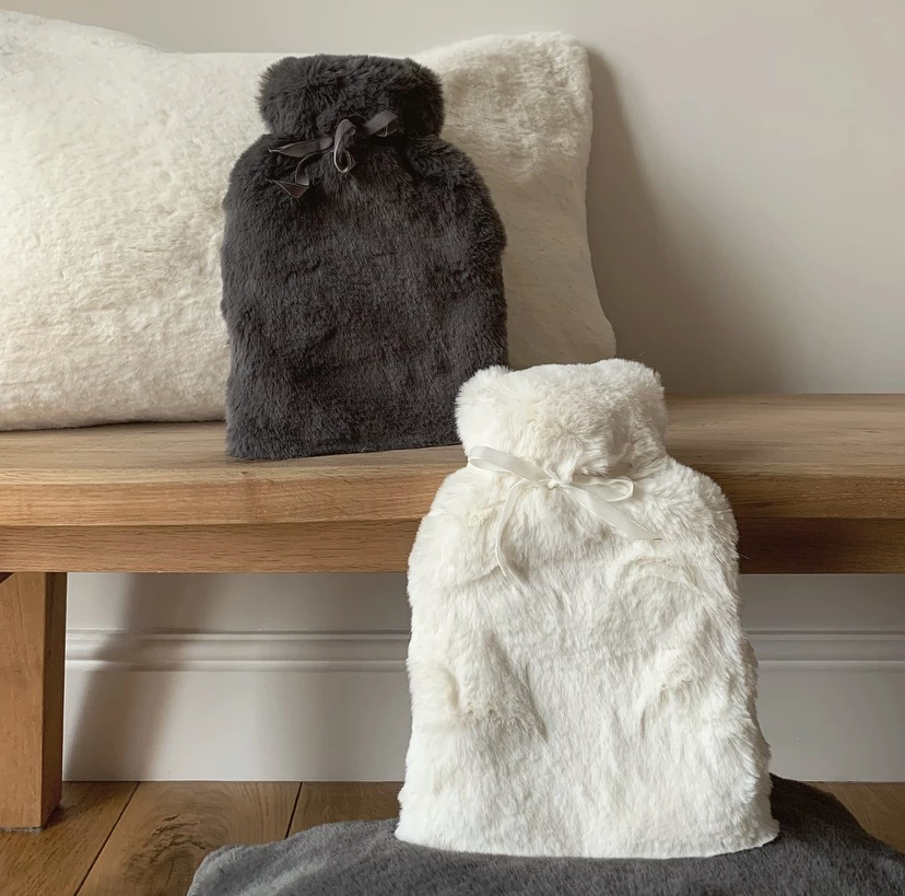 As the evenings draw in and the weather turns colder reach for our sumptuously soft faux fur hot water bottle to keep you cosy and warm. Our square hot water bottles feature a co-ordinating velvet ribbon tie and are presented in a cotton drawstring bag, making them perfect for gifting, especially at Christmas. Also available in dark olive and charcoal.