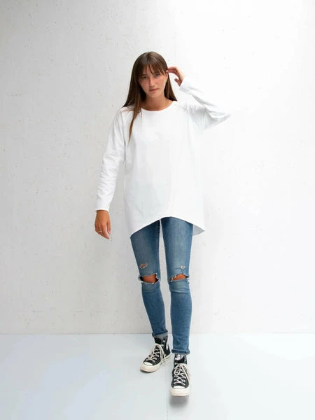 Robyn top is a versatile loose fit, casual top. Made in a soft jersey, it’s perfect matched with joggers or jeans. With print detail or plain. Long sleeves, round neckline and a longline back. Made in Europe Fabric: 94% Cotton/6% Elastane Product is one size – fits sizes 8-16Measures 30″ / 76cm in lengthBust measures 48″ Machine Wash at 30 or Hand Wash in Cold water Wash with similar colours Wash Star Tshirts inside out Reshape while wet and dry naturally Iron on the reverse side while line fresh or slightly damp