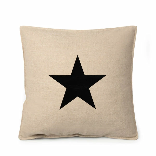 Natural Fibre Star Cushion in Natural. Bold and beautiful! Our Natural Fibre Star Cushion is made from 100% soft natural fibres and is filled with 100% real feathers. Whether scattered on a bed, or used to add interest and extra-comfort to a sofa, this plump cushion is sure to make a statement. Embellished with a large black star to one side. Size: 50 x 50 cm Linen Look 100% natural fibre Stylish and versatile Comfortable but holds its shape Fabric Cover: 85% Ramie/15% Cotton natural fibre. Pad: 100% Feather. Care: Cover is machine washable