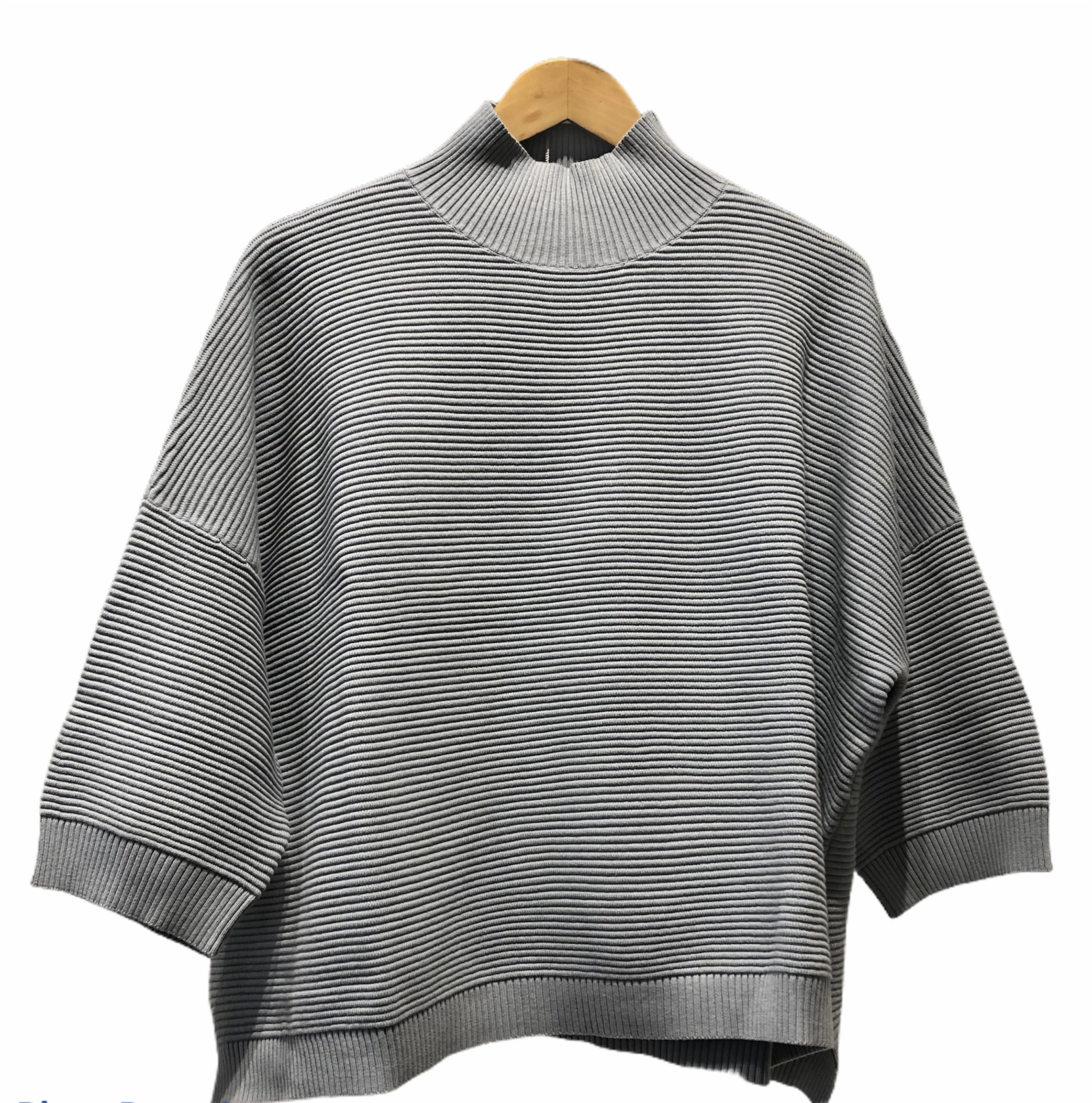 Vicki jumper is a stylish and relaxed shape. Cotton rib knit with funnel neck. It’s a versatile shape that is a flattering wardrobe must.