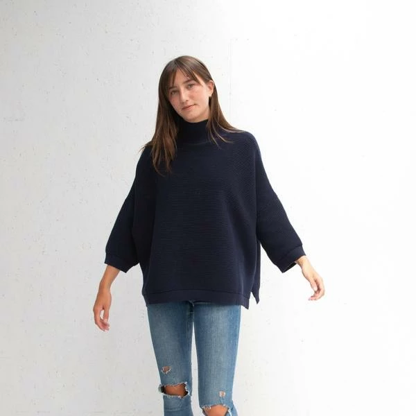 Vicki jumper is a stylish and relaxed shape. Cotton rib knit with funnel neck. It’s a versatile staple that is a flattering wardrobe must.