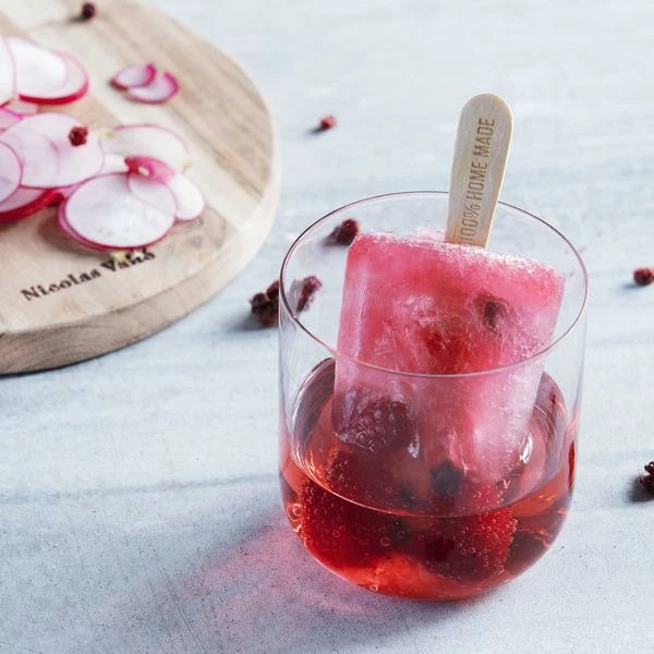 Make your own delicious, homemade ice cream lollies with Nicolas Vahé’s ice cream sticks. They are made of birch wood and are for single use only. If you serve homemade lollies to your guests, they will certainly know that you have made them because every stick has the words ‘100% Homemade’ written on them. You can make 100 different lollies with one package. Size l: 21 cm, w: 11 cm, h: 1 cm