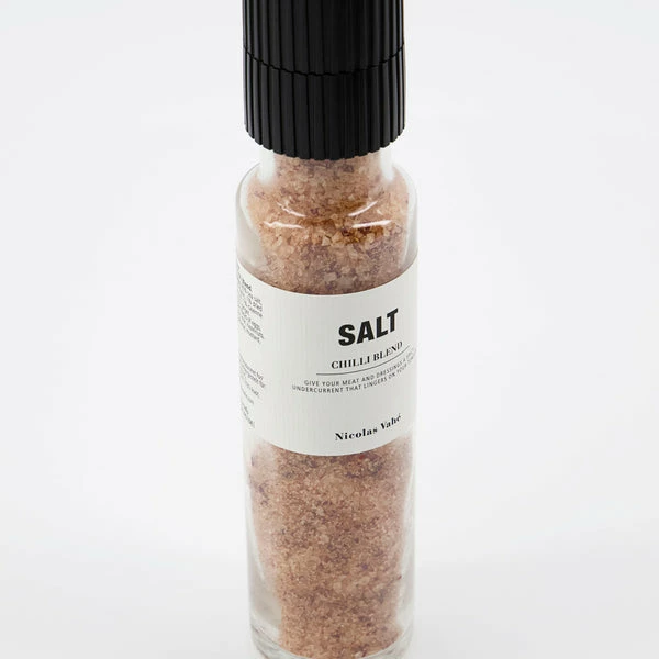 Give your dishes a spicy undercurrent with this salt and chili blend from Nicolas Vahé. Use it as the finishing touch to roast potatoes and vegetables, meats and dressings when you want to serve a delicious meal with a lingering heat. When it comes to giving your guests a memorable dining experience, this salt delivers. The mill comes with a ceramic grinder which gives you finely ground spices. This releases the oils for more aroma and flavour in your dishes. Size: 315 g. Content: Sea salt 96%, chilli flakes, dried bird’s eye chilli, cayenne pepper, ginger.