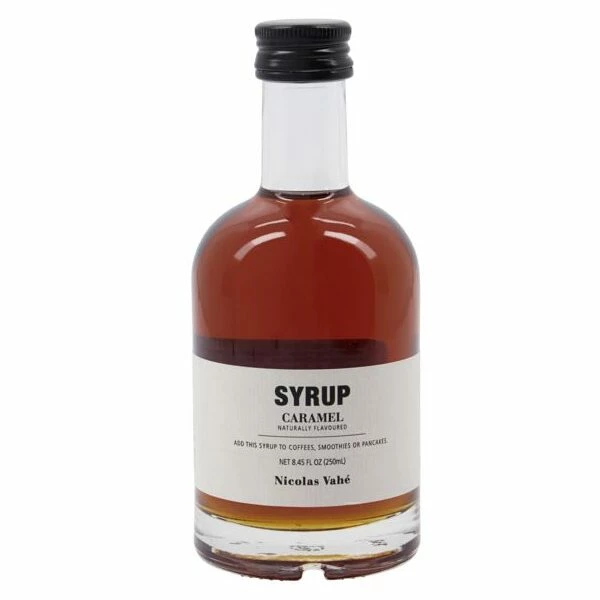 Discover the versatility of this caramel coffee syrup Nicolas Vah�. Mmm, this caramel coffee syrup Nicolas Vah� is, of course, delicious in coffee. But the caramel coffee syrup Nicolas Vah� is also a perfect addition to milkshakes or smoothies. Or how about a little splash on your dessert or pancake. In short, this is more than just a coffee syrup. Especially because of the beautiful design of the sleek glass bottle. The bottle contains 25 cl of caramel coffee syrup Nicolas Vah�. The packaging is an eye-catcher in itself. Create a nice ‘settinkje’ on a tray, together with a few nice coffee mugs and a bowl of delicious chocolate. In addition to caramel coffee syrup Nicolas Vah�, we also have the flavors vanilla and gingerbread in our range. Your favorite coffee for every moment.