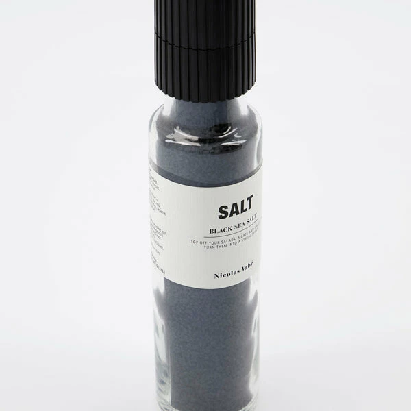 Give your dishes a finish worth noticing. This sea salt from Nicolas Vahé is mixed with activated charcoal to add a striking touch to your cooking. Because we eat with our eyes first, the deep black colour of this salt heightens the appeal of any meal. Top off your soft-boiled egg, salads, meats and sauces with this salt and turn your cooking into a visual feast. The mill comes with a ceramic grinder which gives you finely ground spices. This releases the oils for more aroma and flavour in your dishes. 320g Ingredients: Sea salt, activated charcoal