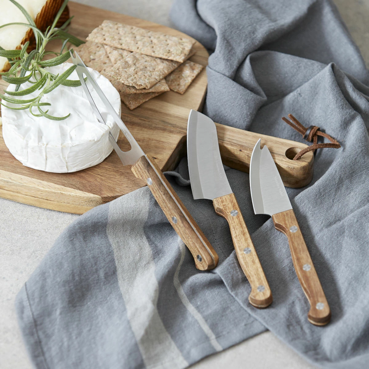 Why isolate an impressive cheese board set up to special occasions when it can be enjoyed all the year round? Add an extra excuse to get the cheese course out with these excellent cheese knives from Nicolas Vahé. They have been expertly crafted from stainless steel with a satin finish for an elegant feel. The handles are made from durable acacia wood, which is known for its warm, honey colour and attractive grain. The three knives leave you ready to cut all manner of cheeses, whether soft or hard. Hand washing is recommended.