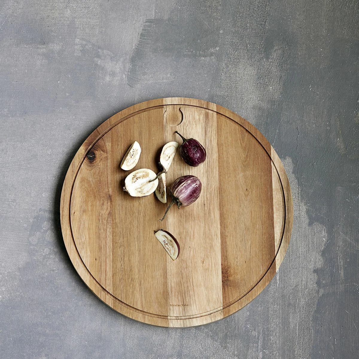 This beautiful, high-quality cutting board, by Nicolas Vahé, is perfect for cooking or serving a combination of tapas for your guests. The beautiful cutting board is called Meat and it is 45 cm in diameter and 3 cm in height. It is made of quality material: acacia tree wood – strong and durable material. Meat will be a functional and decorative element in the kitchen due to its warm color and raw appearance.