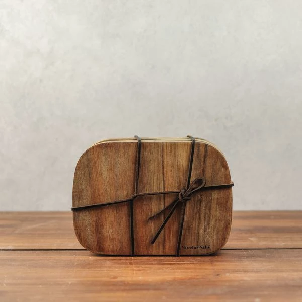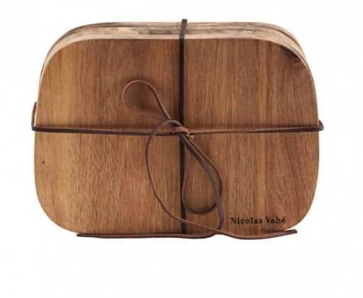 This beautiful cutting board from Nicolas Vahé is perfect as buttering boards on the lunch table. The cutting boards are named Butter and come in a set of 4 boards. Each board measures 18,5 cm in length, 13 cm in width and 1,5 cm in height. They are made of the beautiful acacia tree and will therefore provide your dinner table with a warm, raw look. The Butter cutting boards are also perfect items in a gift box with other delicacies from Nicolas Vahé.