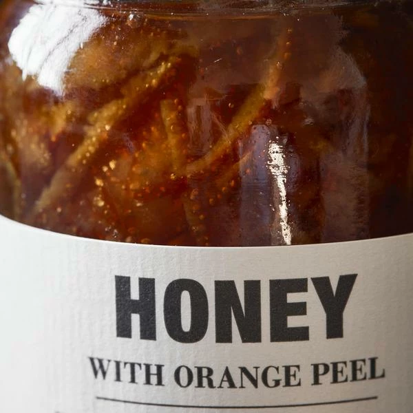Honey with orange has a beautiful, sweet and intense taste with a nice, balanced twist of orange. Enjoy the wonderful flavor on top of toast, waffles or pancakes. You can also enjoy it on top of aged cheese, in your yoghurt or as that extra touch on top of ice cream or a fresh fruit salad. Shelf life after opening: 3 months stored in a closed and dry environment. Content: 70% orange blossom honey, 30% candied orange peels (orange peel, honey).