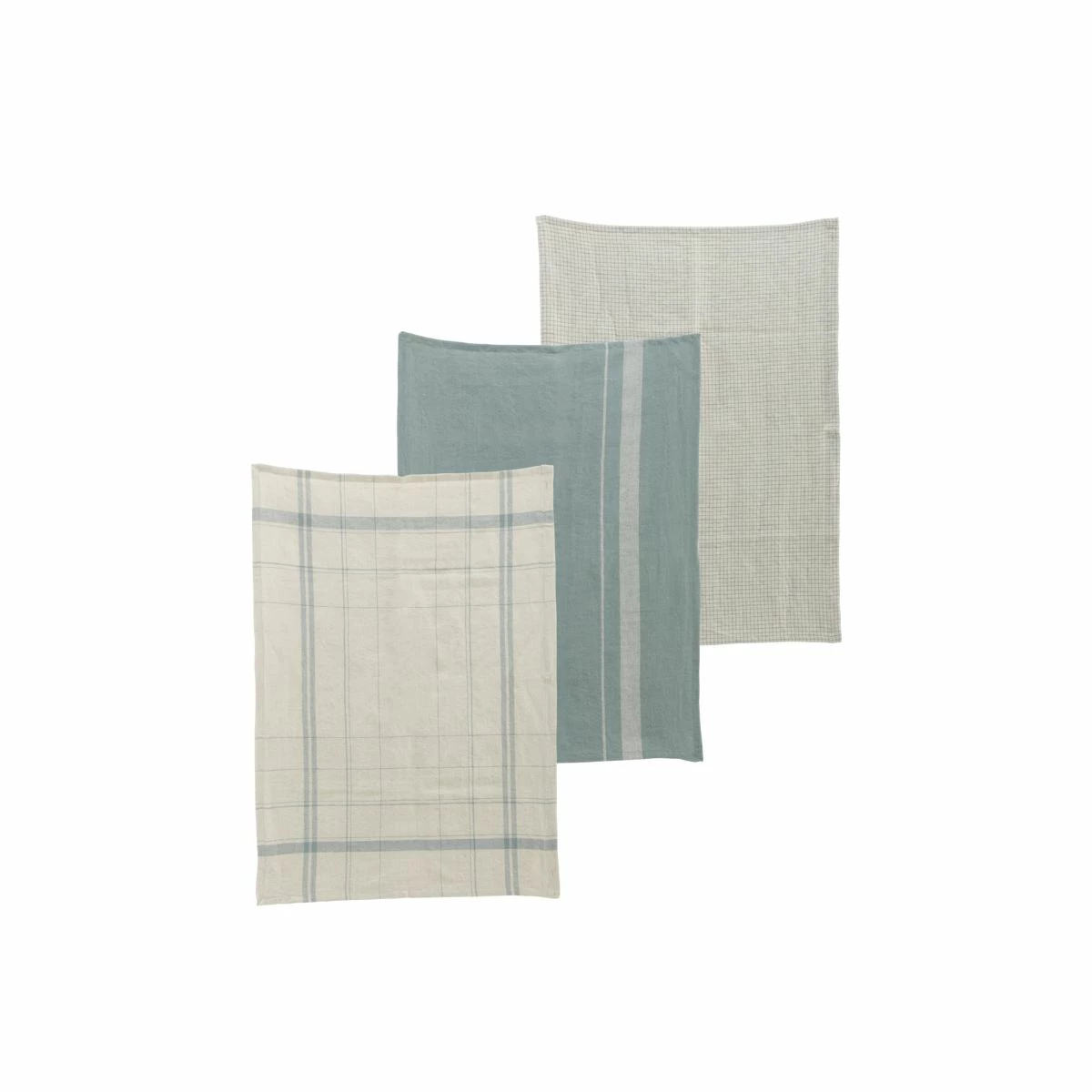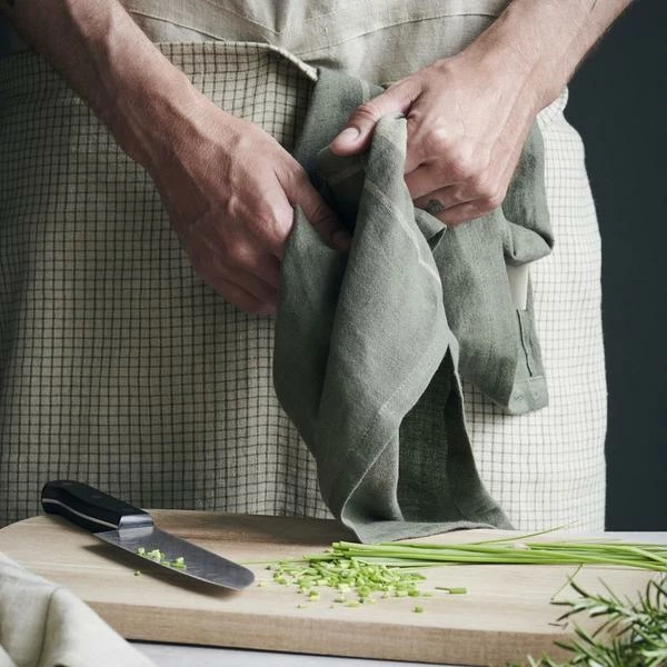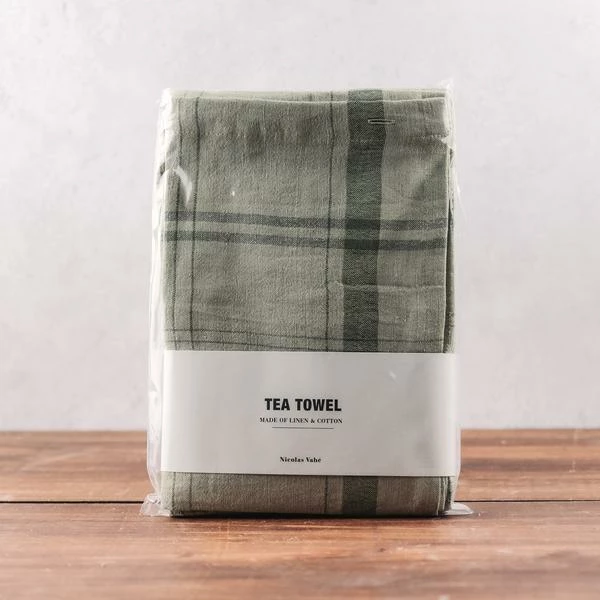 Expand your collection of kitchen textiles with these tea towels called Linen from Nicolas Vahé. The set of 3 designs come in a dusty green and is made of a soft cotton and linen blend. Both are natural fibres with a high absorbency which is what you want in a tea towel. Linen also makes the fabric more durable and adds a rustic texture to the weave. Hang them on a rack as part of the décor when not in use. With the neutral green tone, the tea towels will be a fine addition to your home.