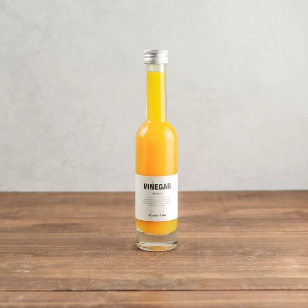 This beautiful and delicious mango flavoured vinegar is the perfect addition to all your summer dishes. The vinegar has the perfect balance between sweet and sour which provides a very harmoniously flavour. The vinegar works fantastically as a fresh summerly dressing to green salads if you blend it together with a splash of olive oil. You can also use the vinegar for marinating chicken or fish. The vinegar comes in a beautiful glass flask which you easily can display on the table together with your oils and favourite spices from Nicolas Vahé. Note: The product has a durability of 12 weeks once opened. Ingredients 60% Spirit vinegar, 30% mango puree, sugar, glucose syrup, modified starch.