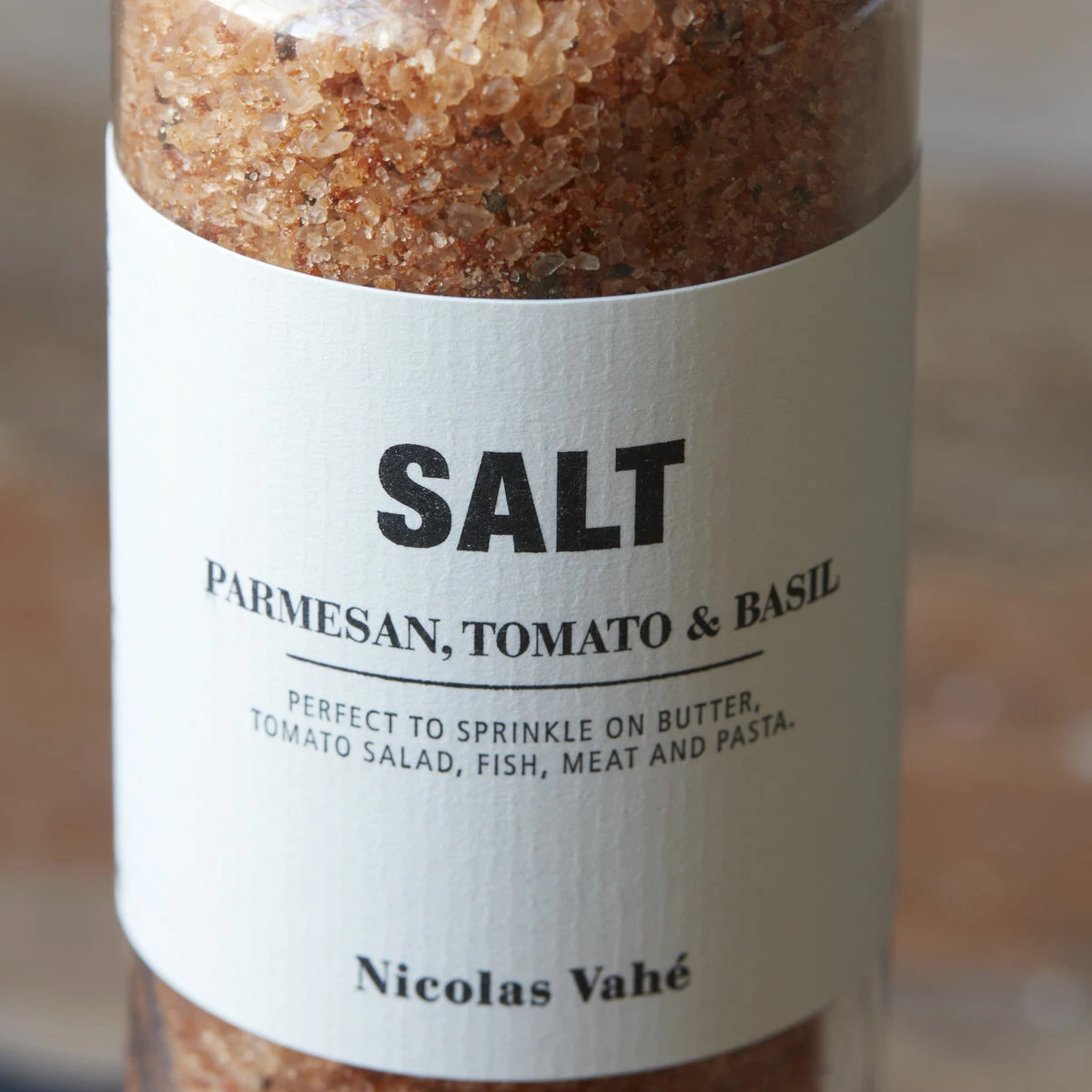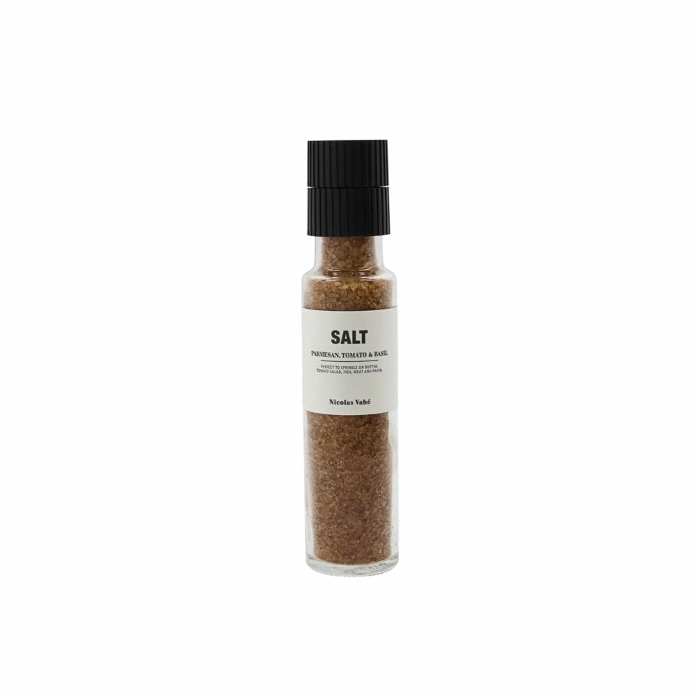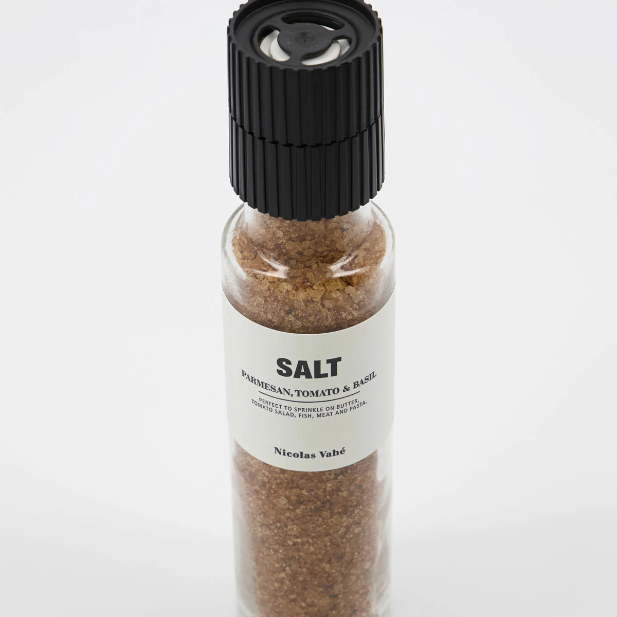 Nicolas Vahe salt with tomato, parmesan and basil contains delicious salt packed in a beautifully designed mill.