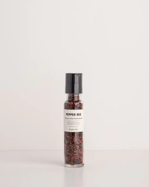 Pfeffer – das wohl populärste aller Gewürze, das Symbol des Würzens schlechthin und aus unserer Küche nicht wegzudenken. Mit der Komposition aus fünf verschiedenen Pfeffersorten bietet Nicolas Vahé hier ein Allround-Talent an – perfekt für den ‘everyday use’ und ein absolutes Basic in jeder Feinschmecker-Küche. integriertes Keramik-Mahlwerk Pfeffer Mix Glasflasche size & fit 140g Zutaten weiße Pfefferkörner, grüner Pfeffer, schwarze Pfefferkörner, Paprika aus Jamaika, rosa Pfeffer. Nährwerte pro 100g: Energie kJ 1110/ kcal 265 Fett 5.9g – Davon gesättigte Fettsäuren 0.5g – Davon mehrfach ungesättigte Fettsäuren 0g Kohlenhydrate 27.6g – Davon Zucker 19.3g Ballaststoffe 0g, Proteine 6 , Salz 0.36g Artikelnummer 104981028