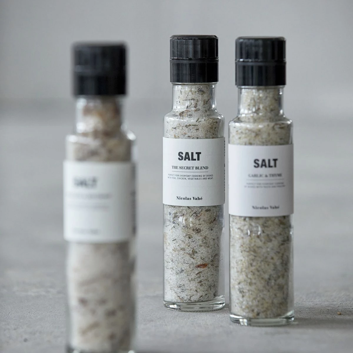 Nicolas Vahé’s secret blend is a must have in any kitchen. Try it and you will love it! Enjoy the flavourful taste of lavender, sundried tomatoes, black pepper, thyme, rosemary, garlic and… The salt comes in a practical grinder that also has a beautiful design, which makes it a very decorative item in any home. Once opened: consume within 16 months.