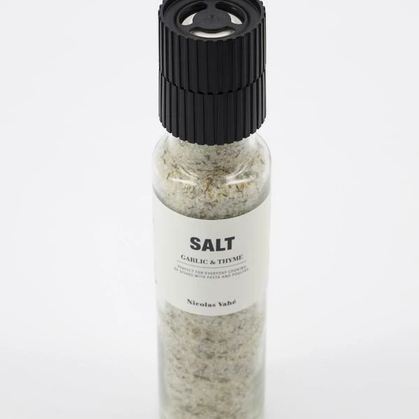 Take your cooking to the next level with this salt blend from Nicolas Vahé. It has been given an intense flavour of garlic and thyme that is perfect for everyday cooking, especially with pasta dishes and poultry. The mill comes with a ceramic grinder which gives you finely ground spices. This releases the oils for more aroma and flavour in your dishes. Size: 300g Ingredients: 89,9% salt, 8,3% garlic, 1,8% thyme, thyme essential oil.