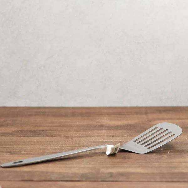 Add a touch of minimal elegance to your cooking with this stainless steel spatula from Nicolas Vahé. More specifically, Daily is a slotted spatula. Thanks to the holes, it easily slides under meat, eggs and fish on the pan while also draining the fat away. You can also use it to cut and serve lasagna from an ovenproof dish. After use, let the spatula decorate your kitchen along with your other utensils from the Daily range.