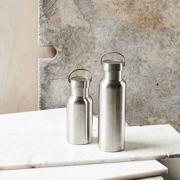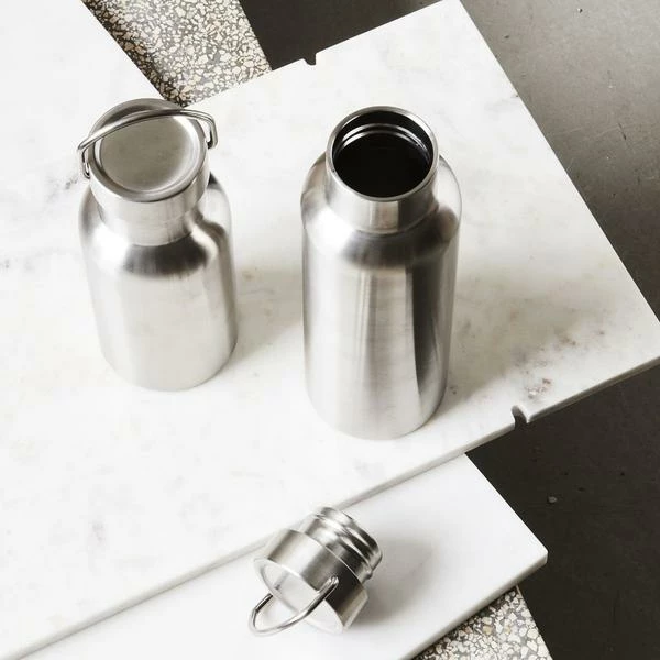 A thermos is a must-have when you are on the go. Our stainless steel version with a practical carry handle will keep your drinks hot or cold all day long. Take your tea or coffee along for the day, or make it easy to keep hydrated with cold water all day long – you will never need to buy a plastic bottle again! A reusable thermos & water bottle is key equipment for your zero waste journey. SIZE h: 18 cm, dia: 7.3 cm, holds 380ml also available in 500ml MATERIAL Stainless steel WASHING INSTRUCTIONS Hand wash only USE Foodsafe